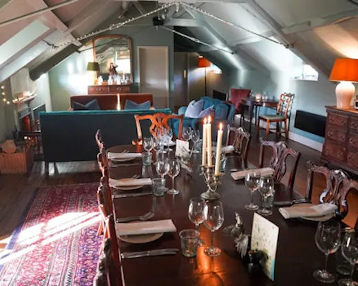 Our lovely loft space can be used for celebrations, private dining and group gatherings. Filled with a variety of antiques and a cosy open fire, the room is separate from our main dining area and hosts 12 - 22 guests with a bespoke menu. To book, email the wonderful Daisy: [email protected].