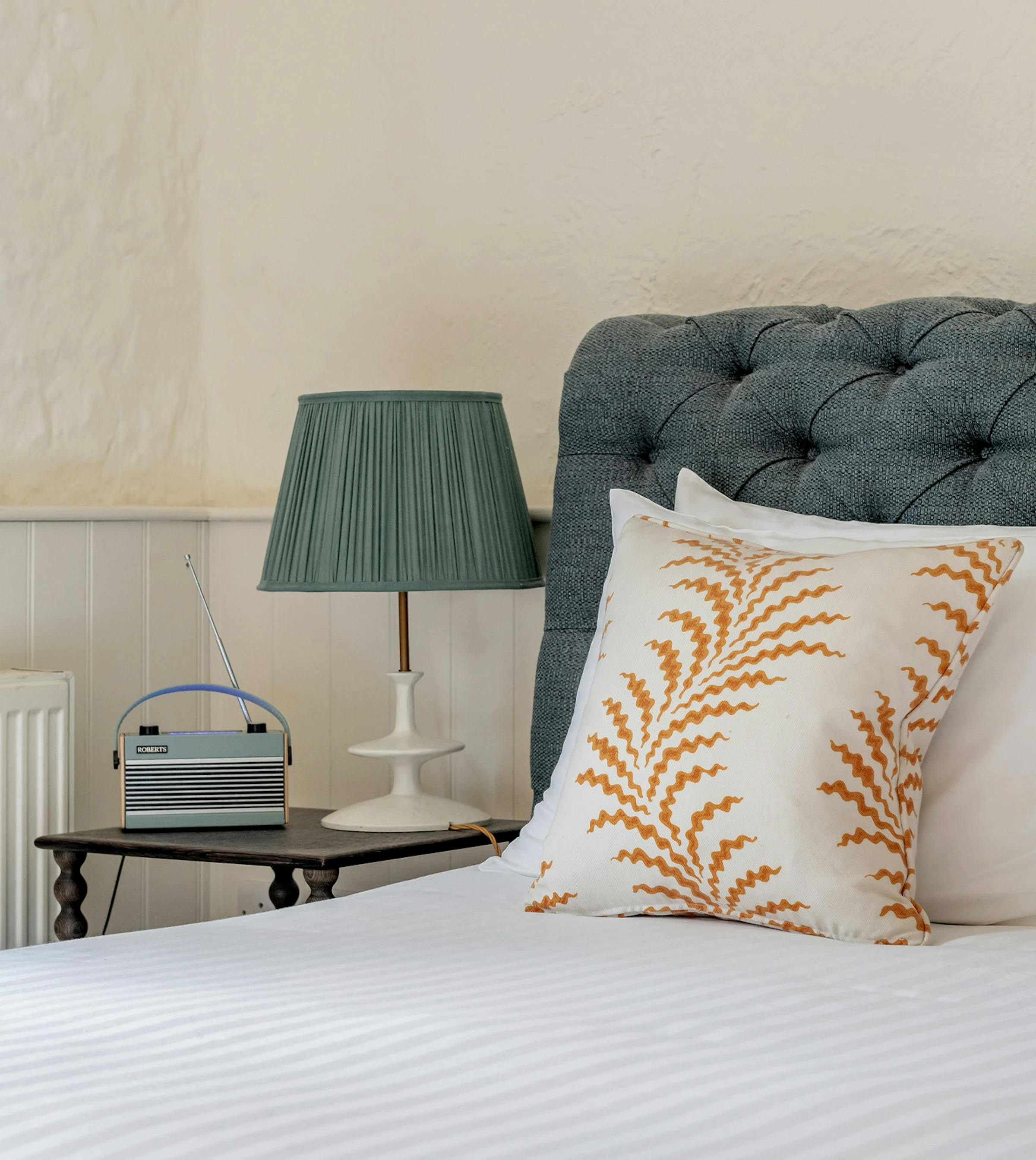 Sixteen simple yet stylish rooms set within the pub and stable block. Bedrooms at The Bath Arms feature crisp cotton sheets, baths with our own natural products, comforting interiors inspired by the British countryside and views of the ever-changing surroundings.